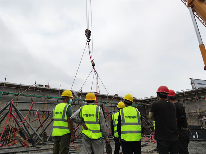 6.为确保.盐城加油站球形网架安装顺利,应有详细的盐城施工组织设计。网架安装必须保证结构的稳定性和不产生的附加变形。